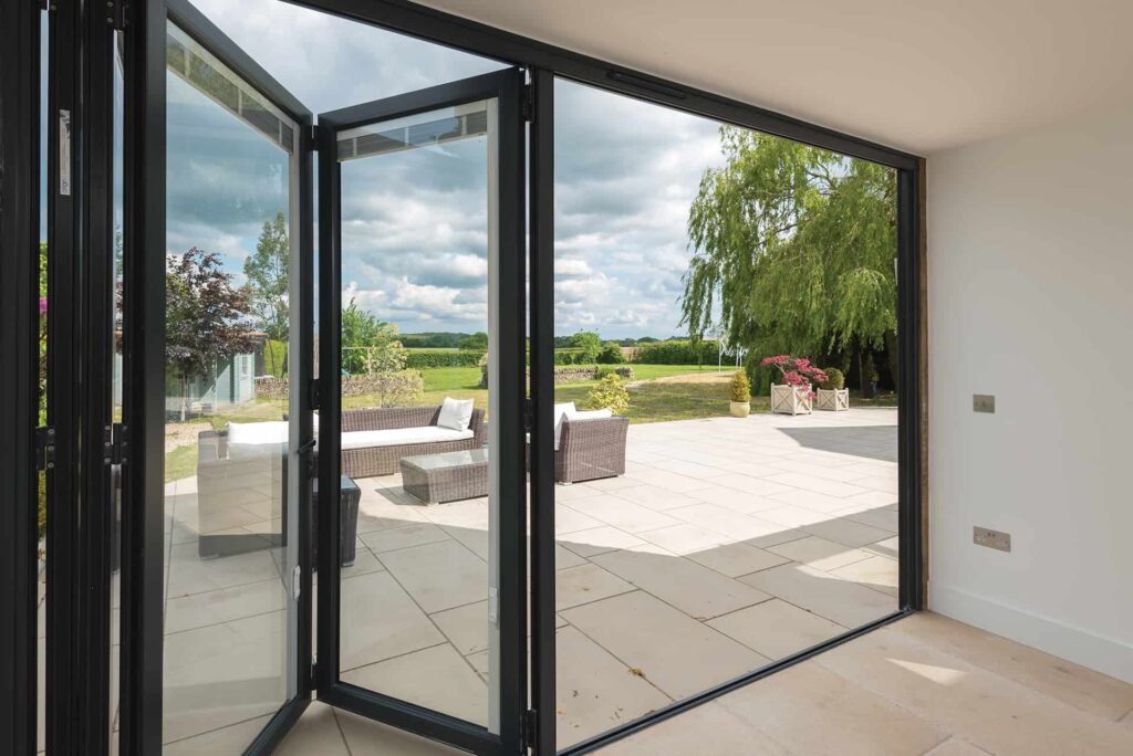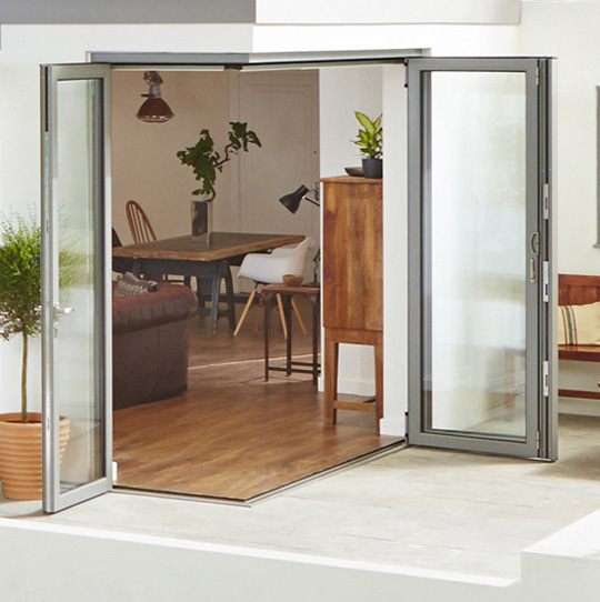 Strong, secure, and visually striking, a corner bi-fold door seamlessly blends indoor and outdoor spaces.