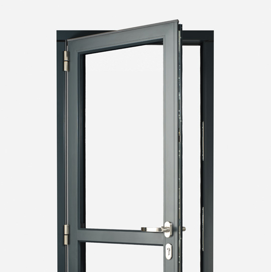 Origin’s aluminium single doors can be customised with either a single pane of glass or a mid-rail. The mid-rail design incorporates an additional horizontal aluminium section, dividing the panel into two.